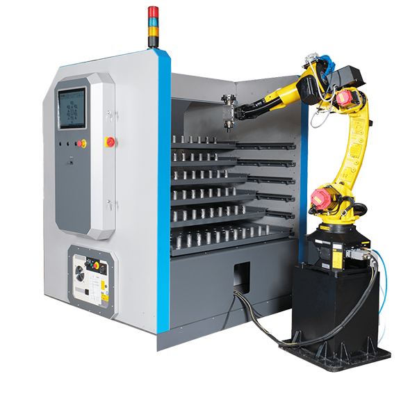 The CubeBOX Blues DR-3 Position is a robotic automation system designed to enhance CNC machine tending by automating the loading and unloading of workpieces. This system features a 6-axis industrial robot compatible with payloads of 12 kg, 25 kg, and 35 kg. It includes 5 to 7 drawers, each measuring 900 mm by 500 mm, and is capable of tending up to two CNC machines simultaneously. The CubeBOX Blues DR-3 Position offers easy and quick installation, is equipped with ROBOCAM software, and includes a touch panel PC for user-friendly operation. It’s suitable for single, double, or multiple CNC machine applications, providing flexibility in various manufacturing environments.